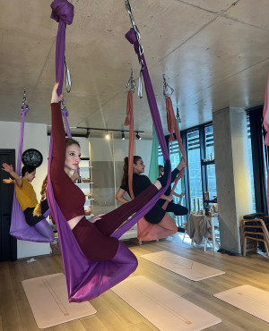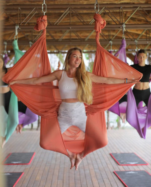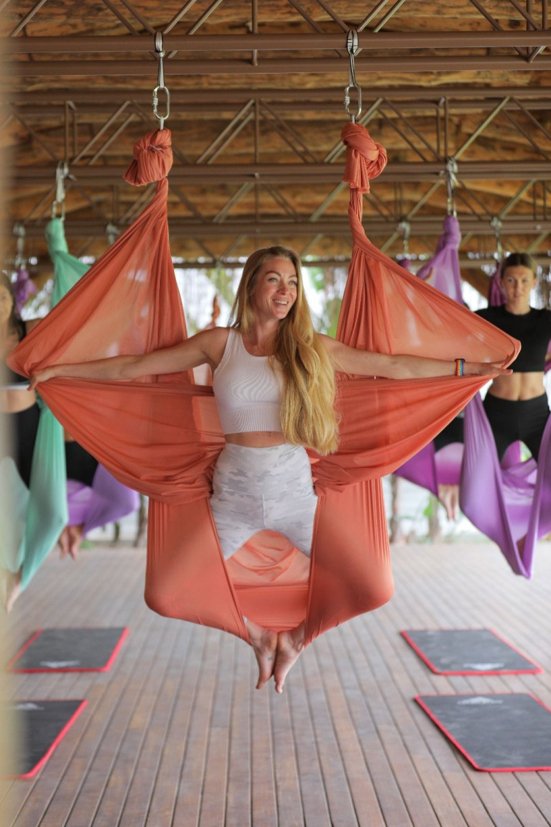 The MelisaYoga Hammock allows you to work on flexibility, strength and core with yoga, aerial skills, acrobatics and more anywhere you hang it.